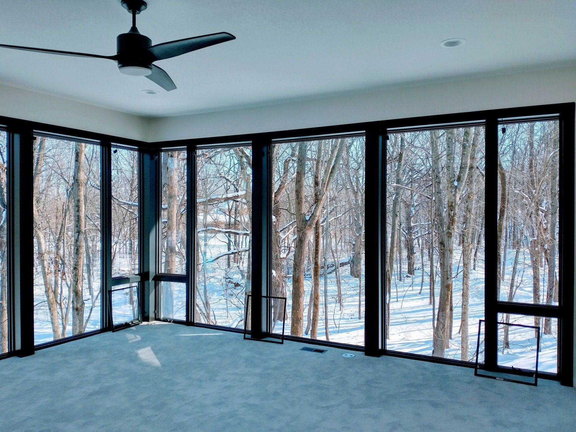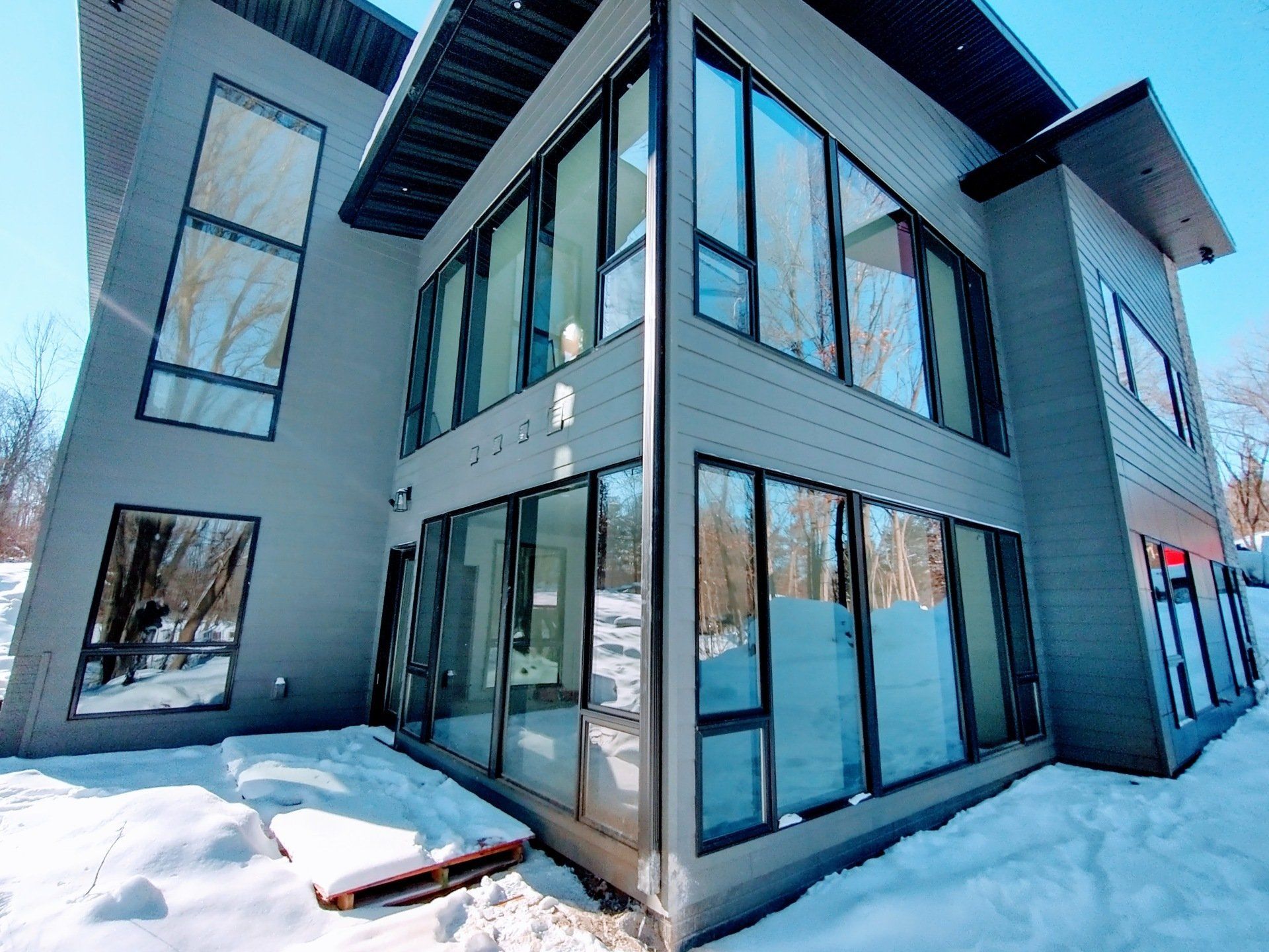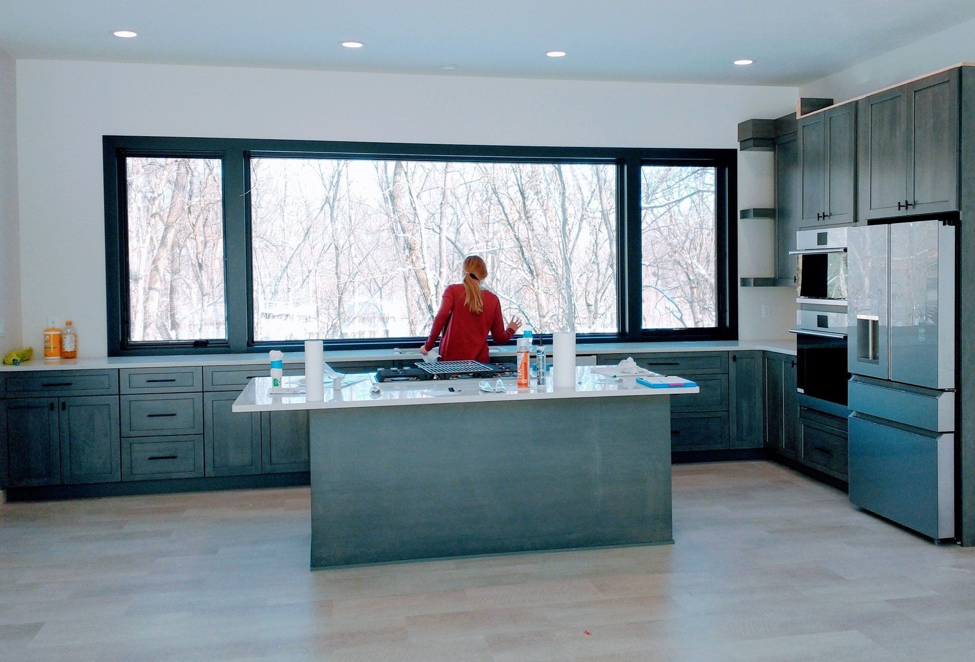 A modern 2-story custom home design in the Cedar Valley, Kerisman Studios collaborated with Klunder Homes Inc. by contributing the roofline, window design, exterior material selection and color, and helped coordinate interior finishes of paint, flooring and countertops, etc.