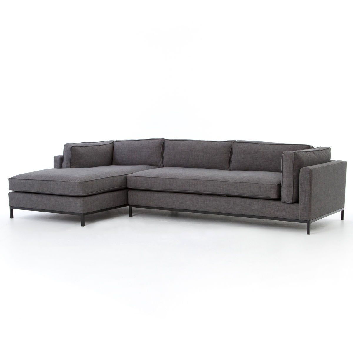 ButtonFlexible style, luxurious comfort, and family-friendly high grade upholstery (100,000 double rub). Clean, simple lines and a black iron base keep everything casual and chic. Bennet Moon, or Bennet Charcoal. Left or right chaise. Dimensions: 30"H x 120"W x 67"D