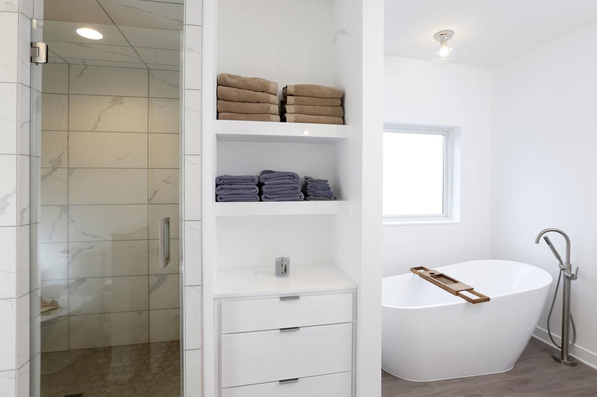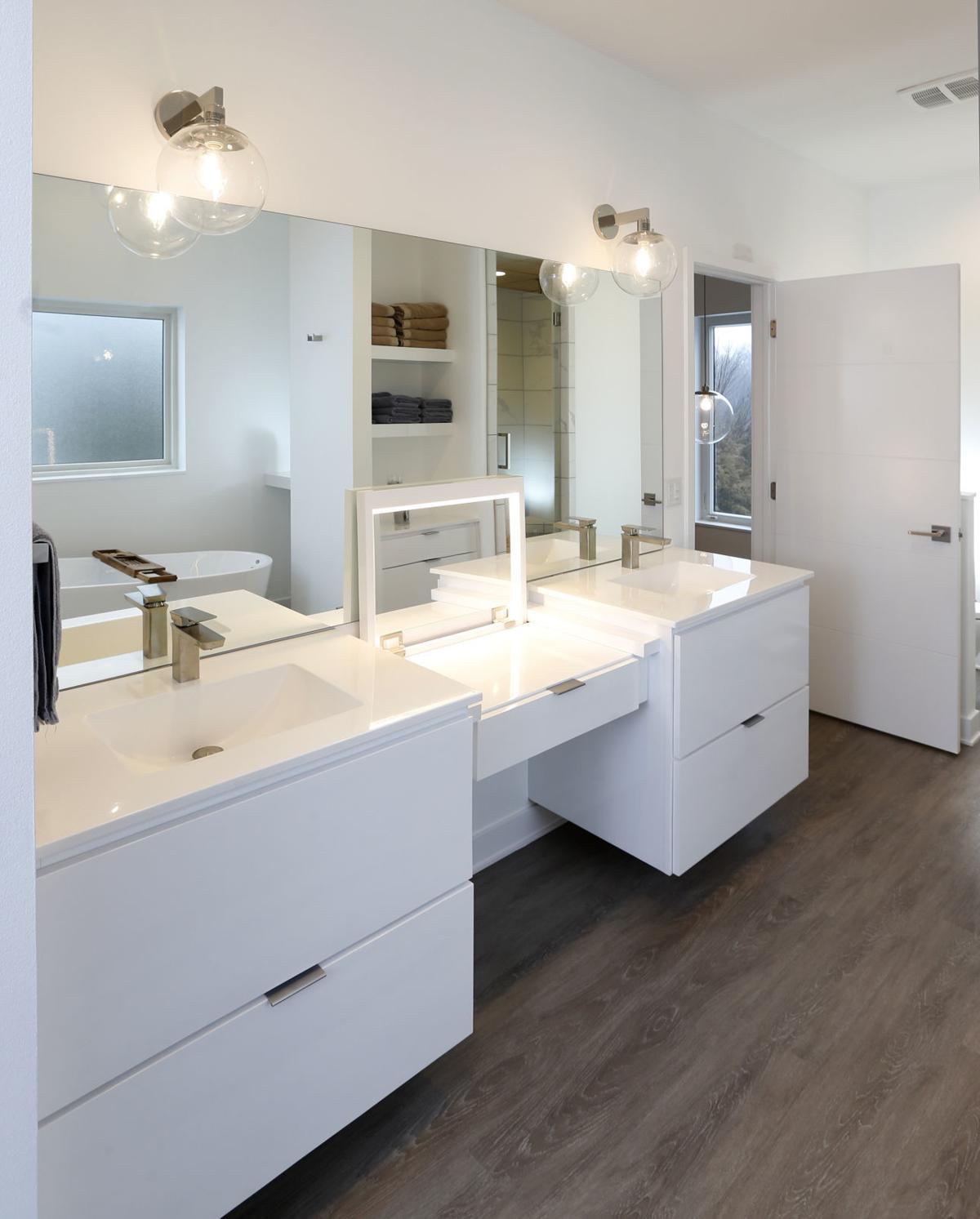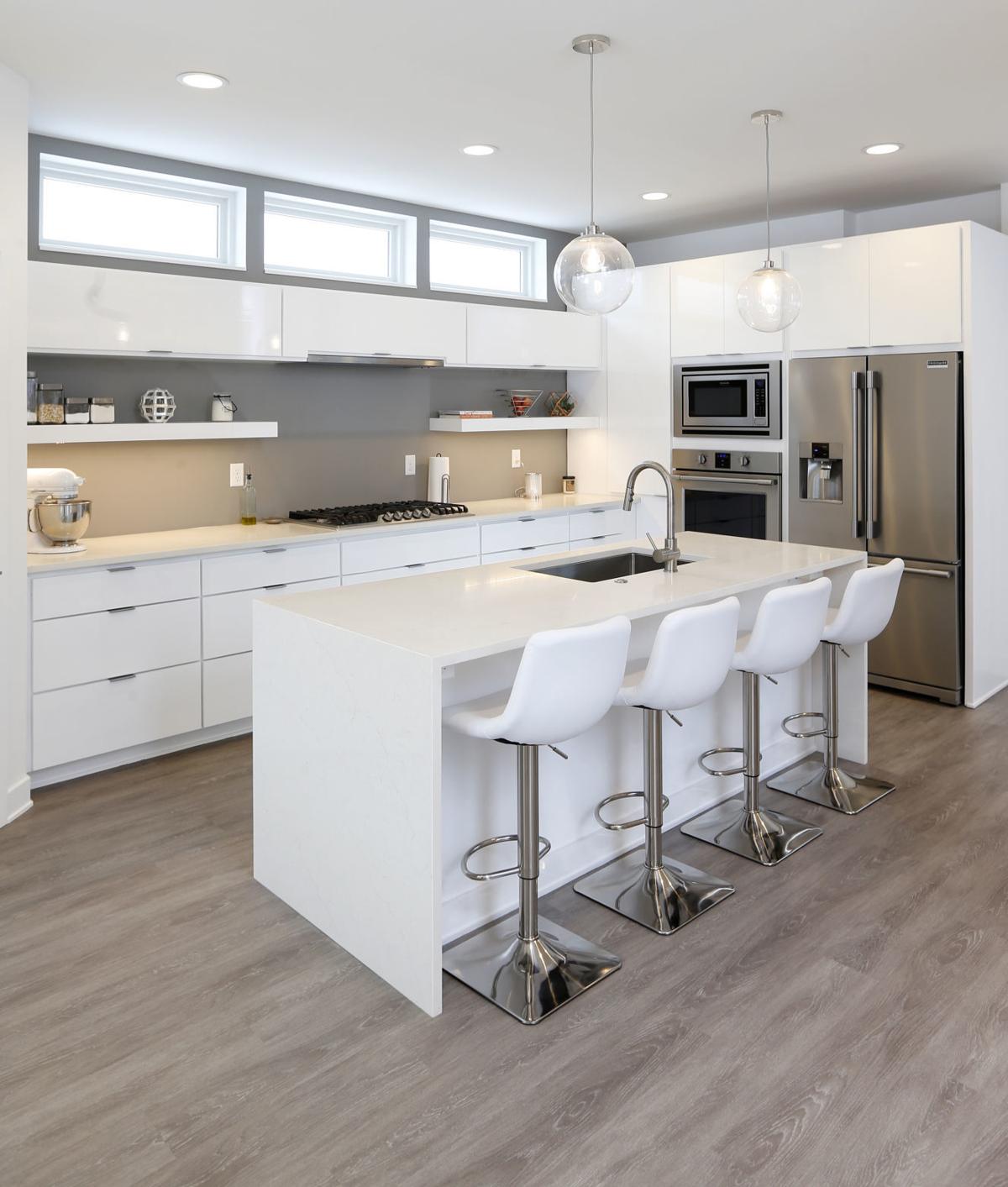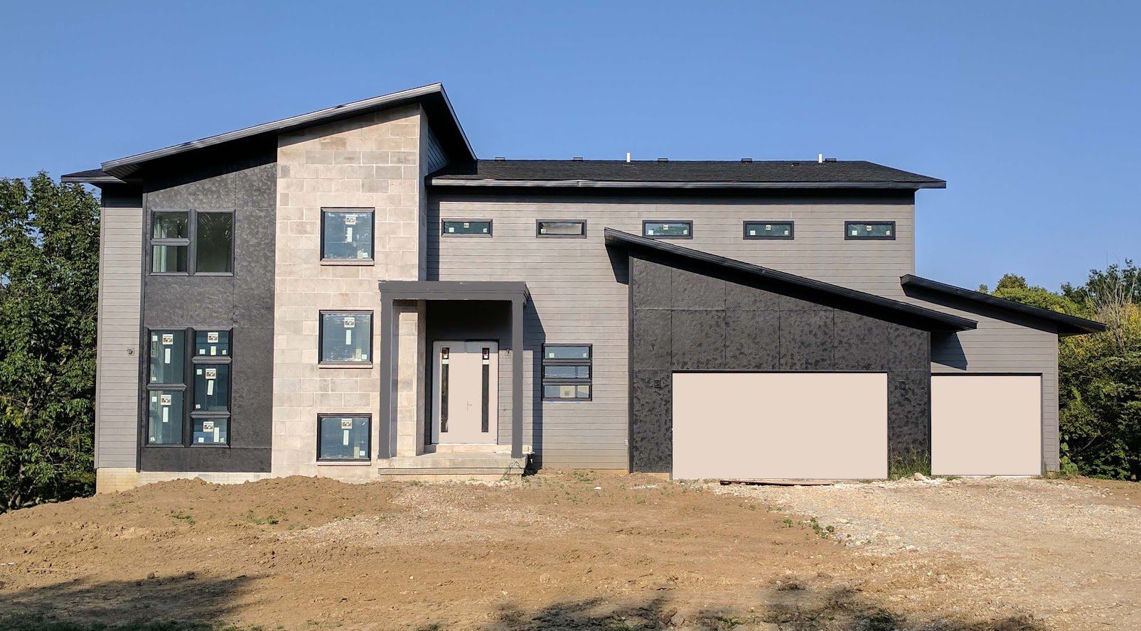 A modern 2-story custom home design in the Cedar Valley, designed by LGC Homes and built by Klunder Homes Inc. Kerisman Studios contributed exterior material colors, interior finishes of flooring and countertops, lighting plans, and catwalk feature. Photos courtesy of Waterloo-Cedar Falls Courier.